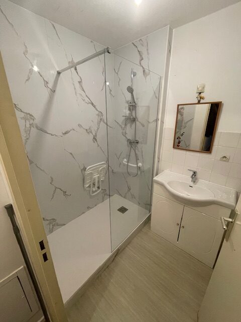 Photos après travaux pour adaptation salle de bain PMR sur le secteur de Vénissieux :